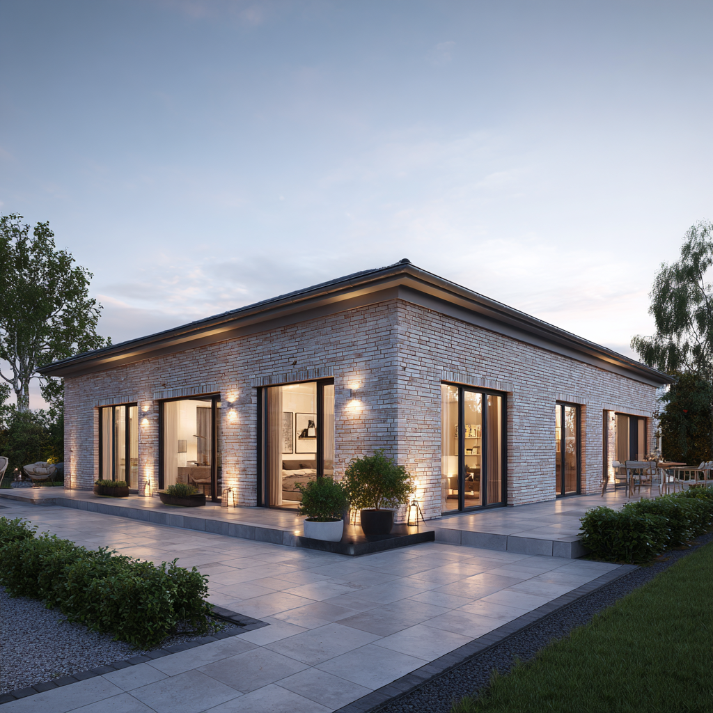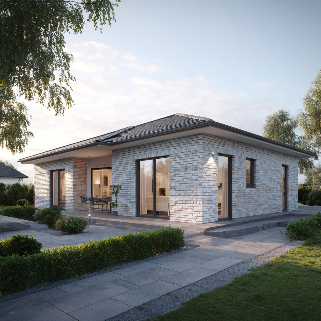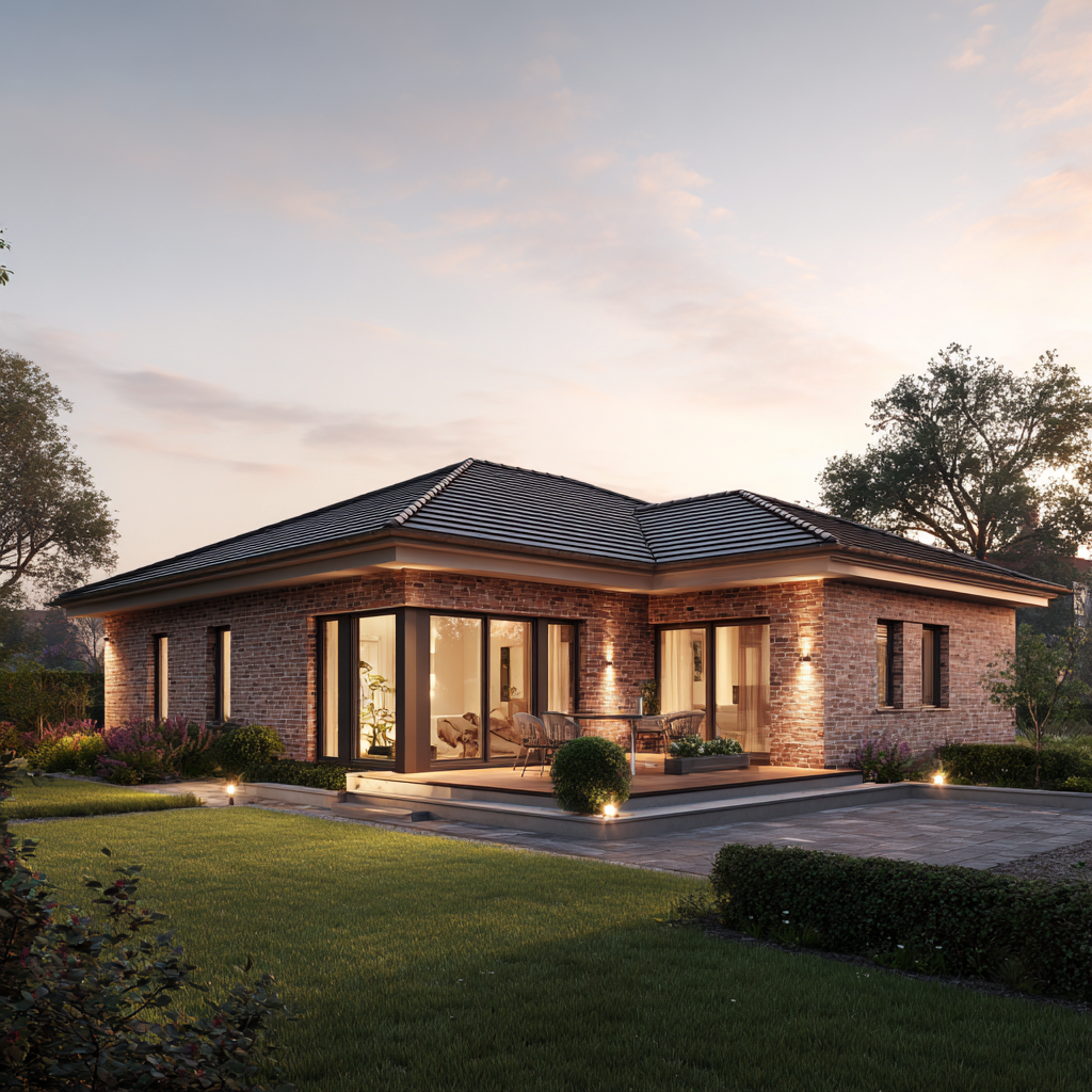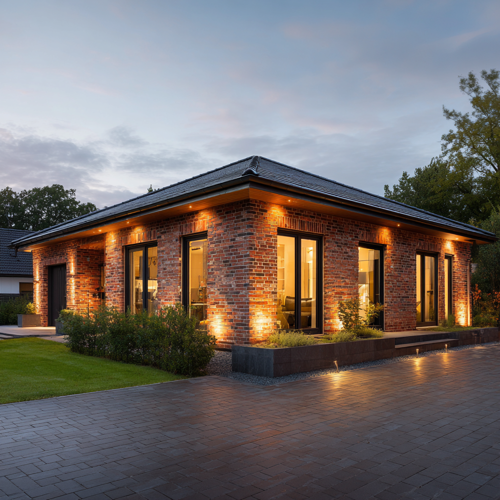 Nordisch, klar, geborgen – der Bungalow „Deichrose 102“ verbindet klassische Satteldach-Architektur mit hellrotem Klinker und ausgewogenen Proportionen. Auf einer Ebene entsteht ein gemütliches, wertbeständiges Massivhaus, das abends warmes Licht in den Garten trägt. Massiv gebaut, energieeffizient, mit Festpreis- und Bauzeitgarantie. Ein Küstenhaus, das Ruhe ausstrahlt und lange Freude macht.