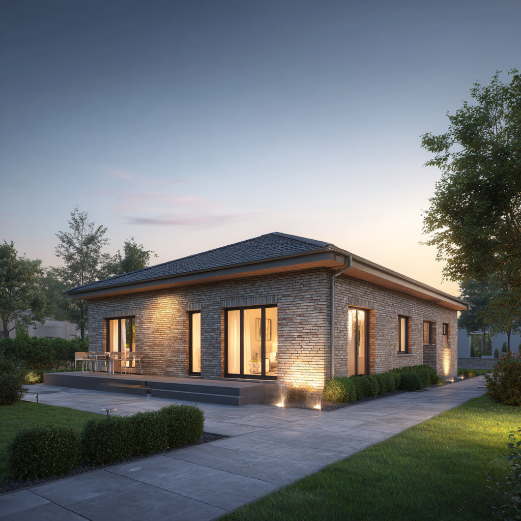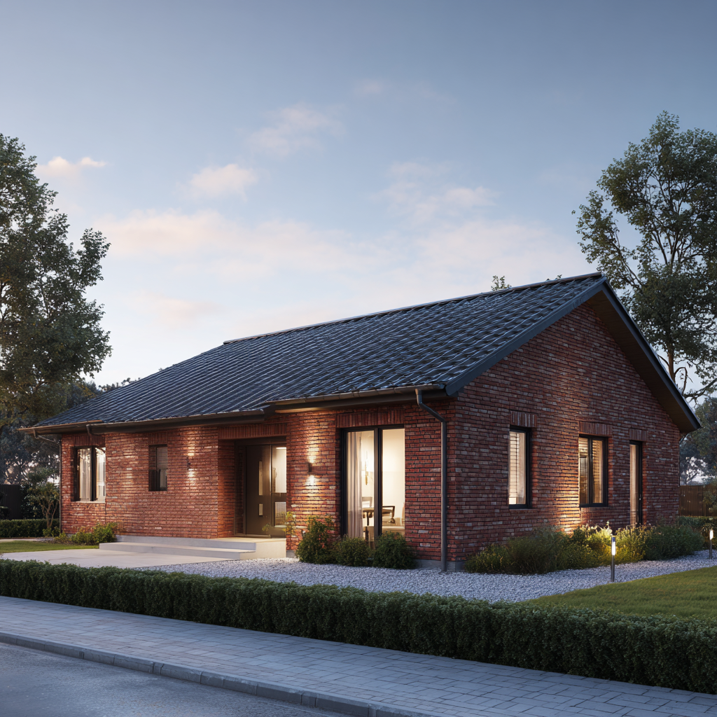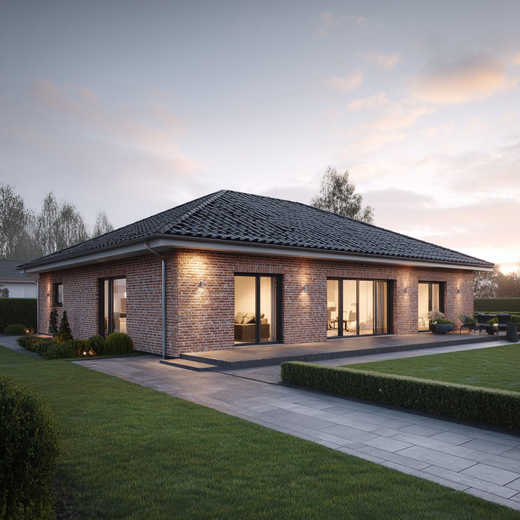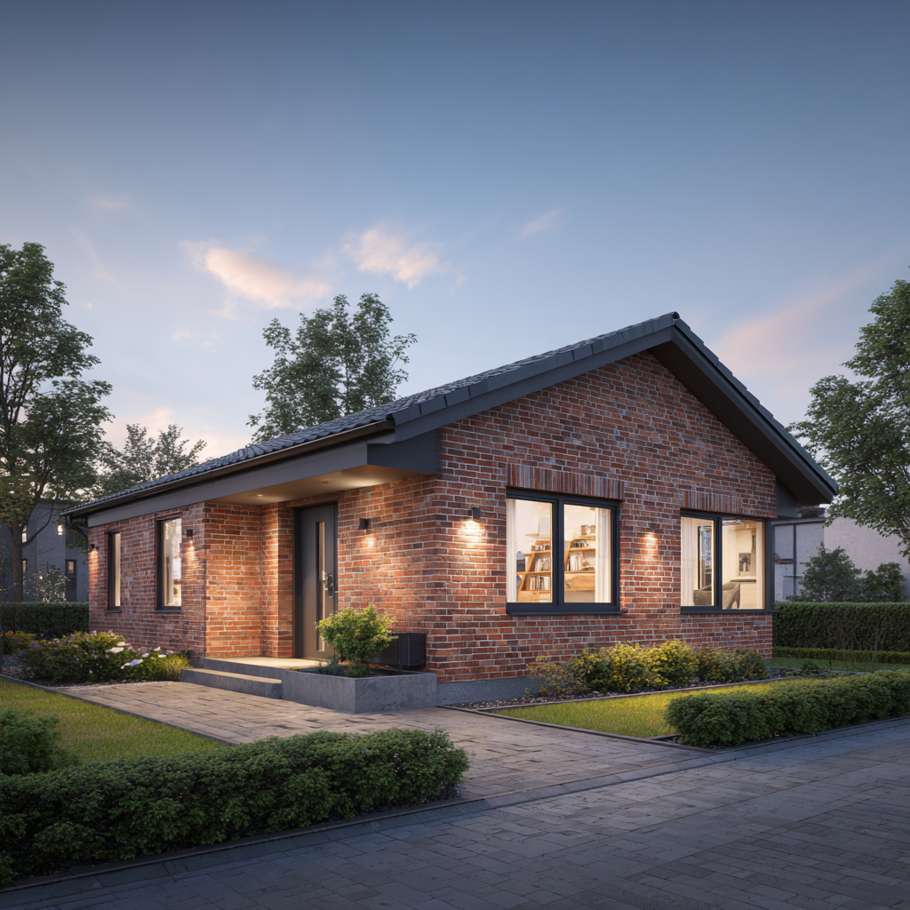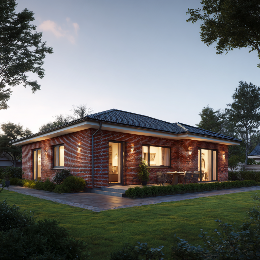 Klar, kompakt und verlässlich, der Bungalow „Küstenhain 104“ steht für bodenständige Architektur und norddeutsche Beständigkeit. Der rotbraune Klinker, das klassische Satteldach und die klare Raumaufteilung schaffen ein Zuhause mit Charakter. Massiv gebaut, energieeffizient und mit Festpreis- sowie Bauzeitgarantie, ein Haus, das Ruhe und Sicherheit ausstrahlt.