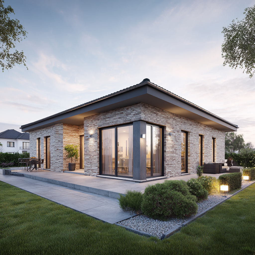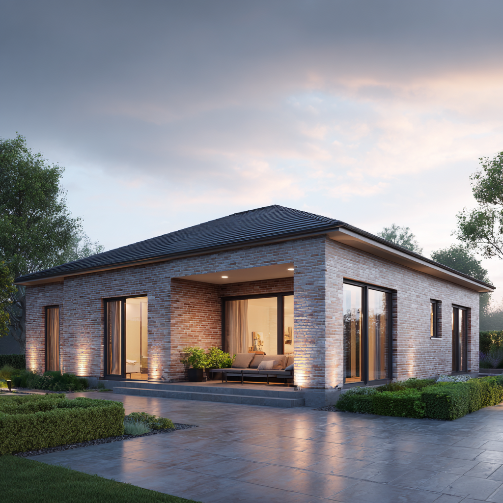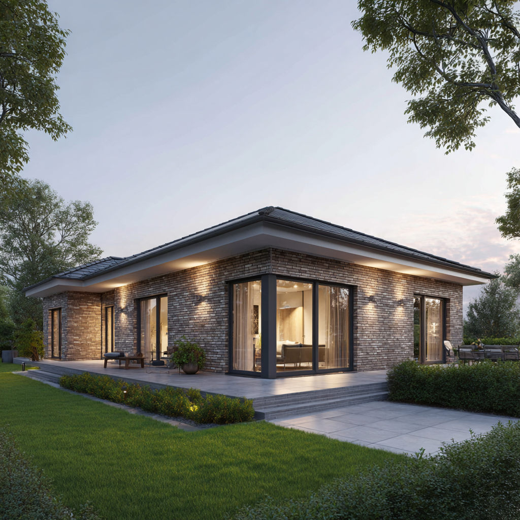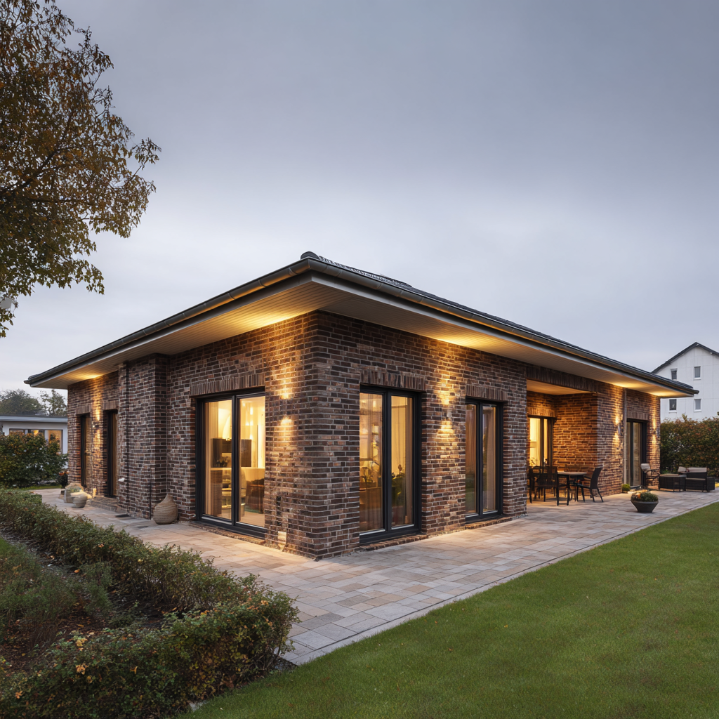 Klar, kompakt und verlässlich, der Bungalow „Küstenhain 104“ steht für bodenständige Architektur und norddeutsche Beständigkeit. Der rotbraune Klinker, das klassische Satteldach und die klare Raumaufteilung schaffen ein Zuhause mit Charakter. Massiv gebaut, energieeffizient und mit Festpreis- sowie Bauzeitgarantie, ein Haus, das Ruhe und Sicherheit ausstrahlt.