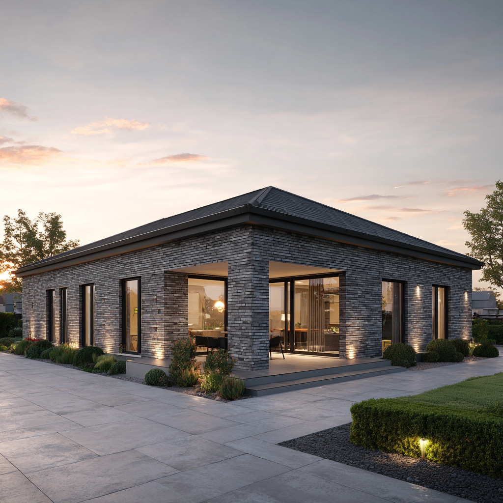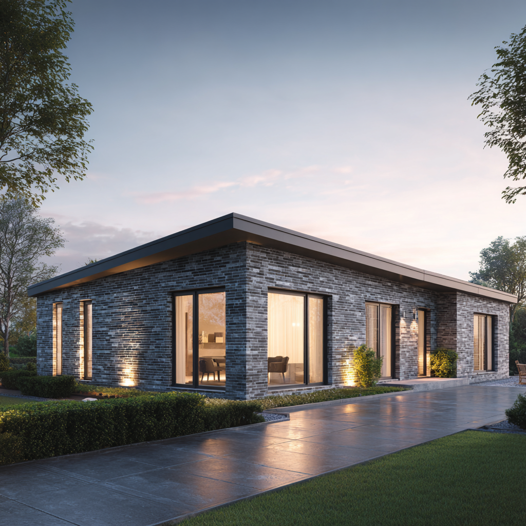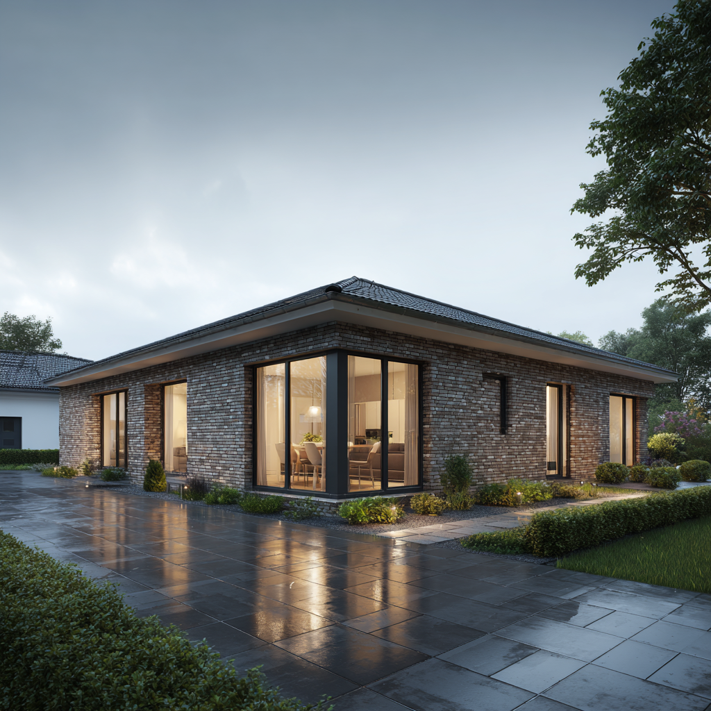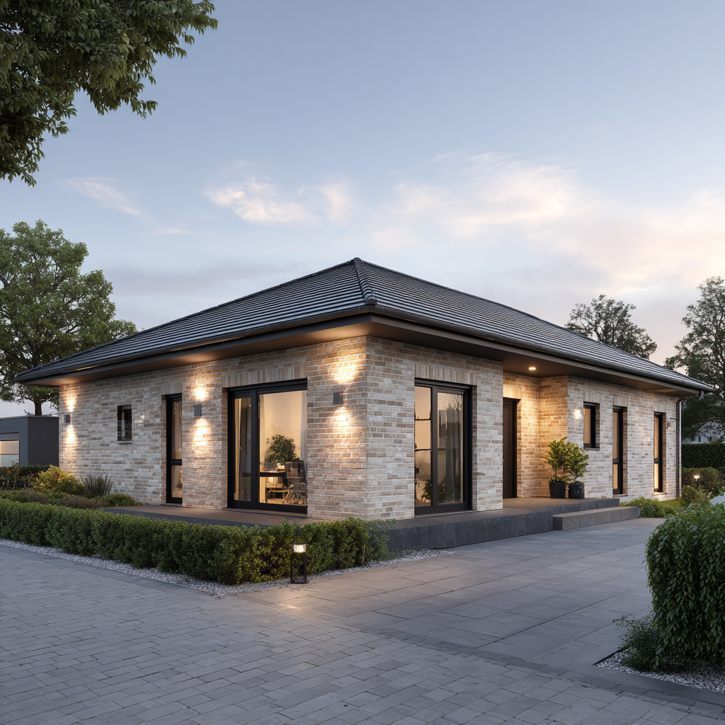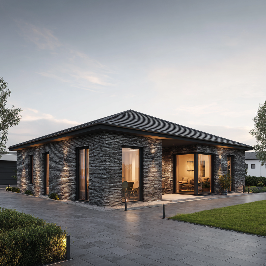 Großzügig, modern und massiv gebaut, der Bungalow „Hafflicht 130“ vereint klare Architektur mit der Ruhe norddeutscher Klinkertradition. Der anthrazitfarbene Klinker, das elegante Walmdach und große Fensterflächen schaffen ein Zuhause voller Charakter. Massiv, energieeffizient und wertbeständig, mit Festpreis- und Bauzeitgarantie. Ein Küstenhaus, das Stil und Beständigkeit perfekt verbindet.