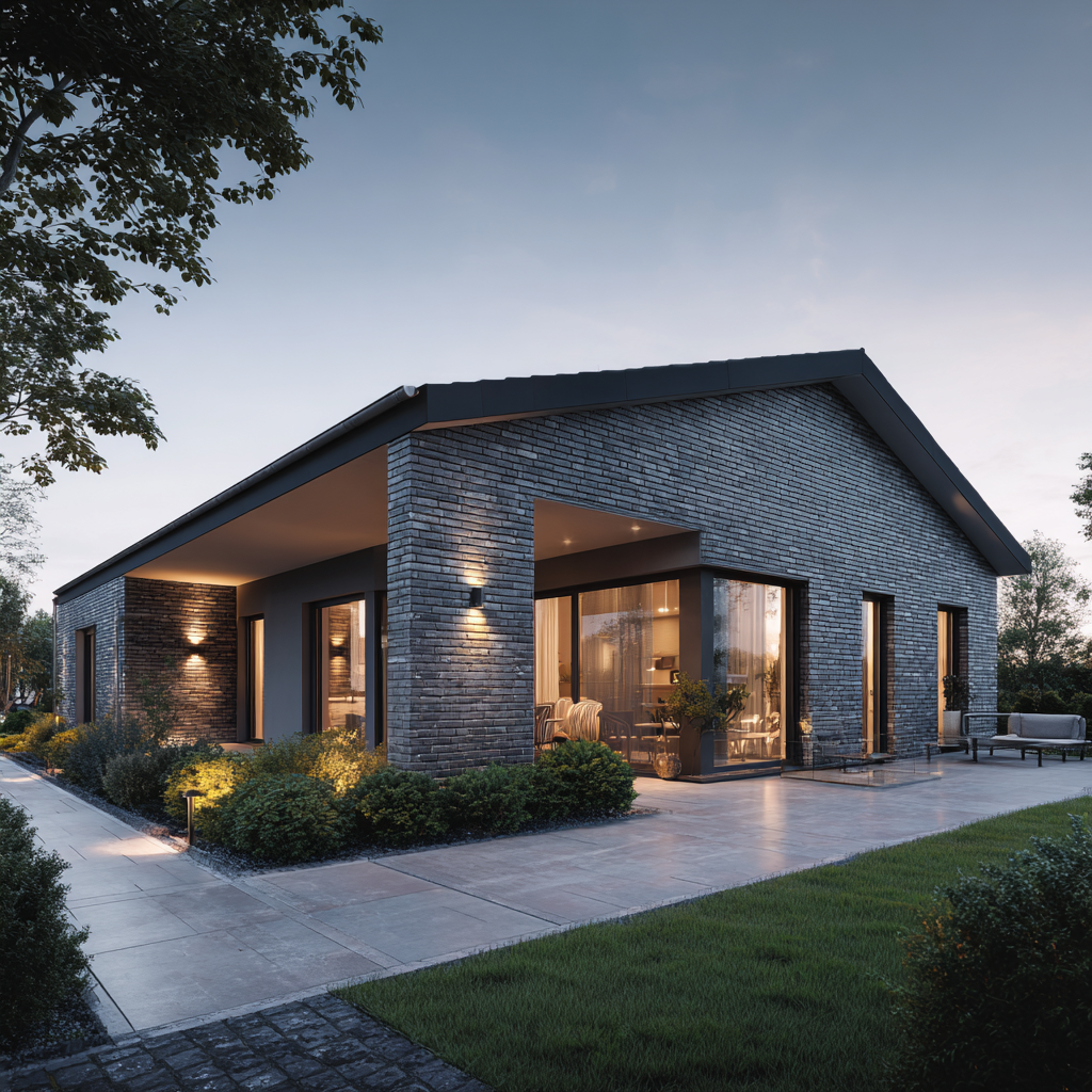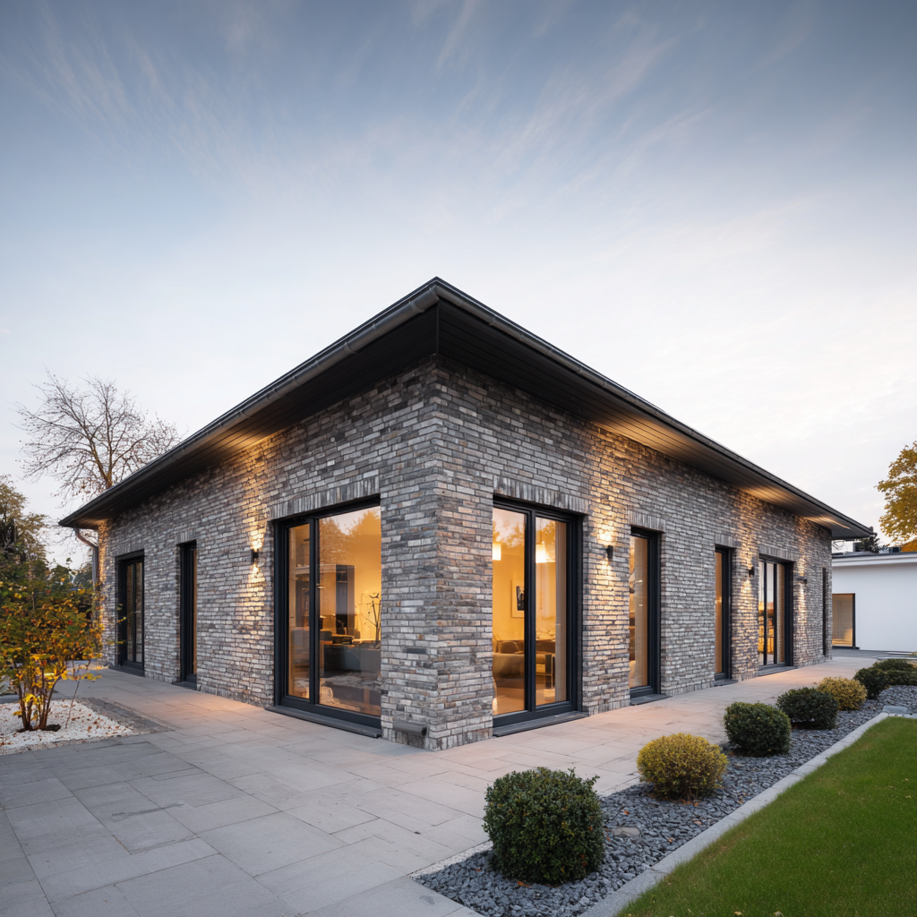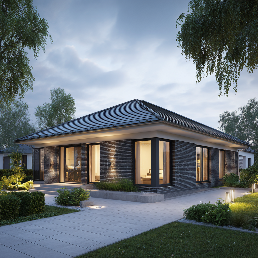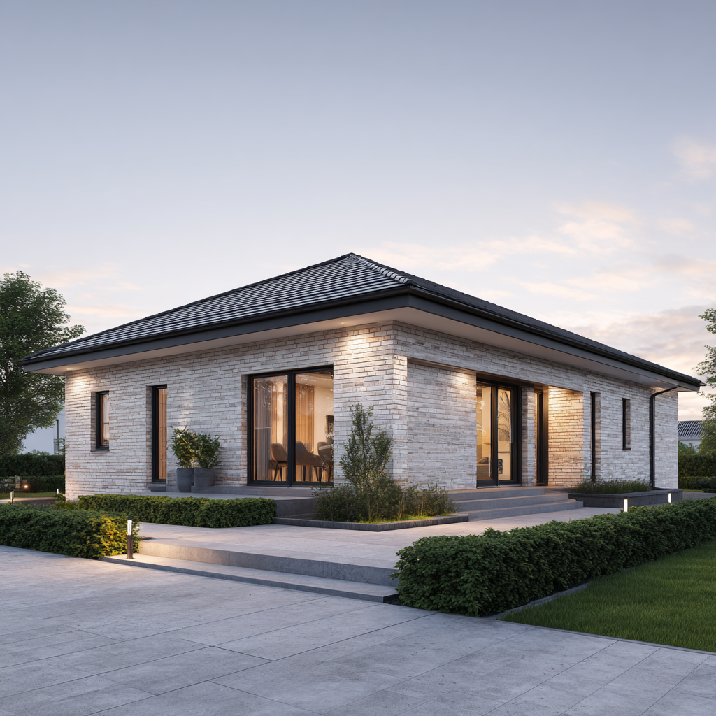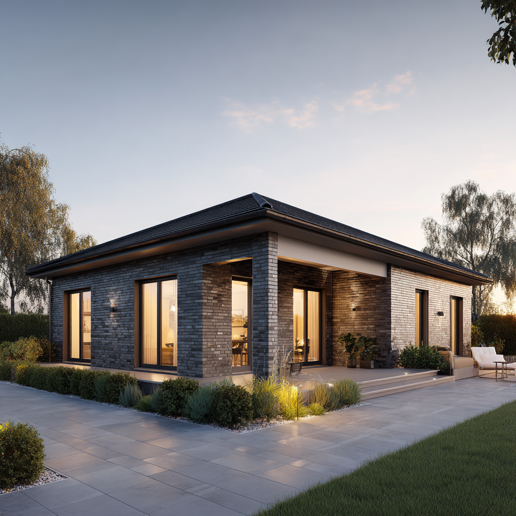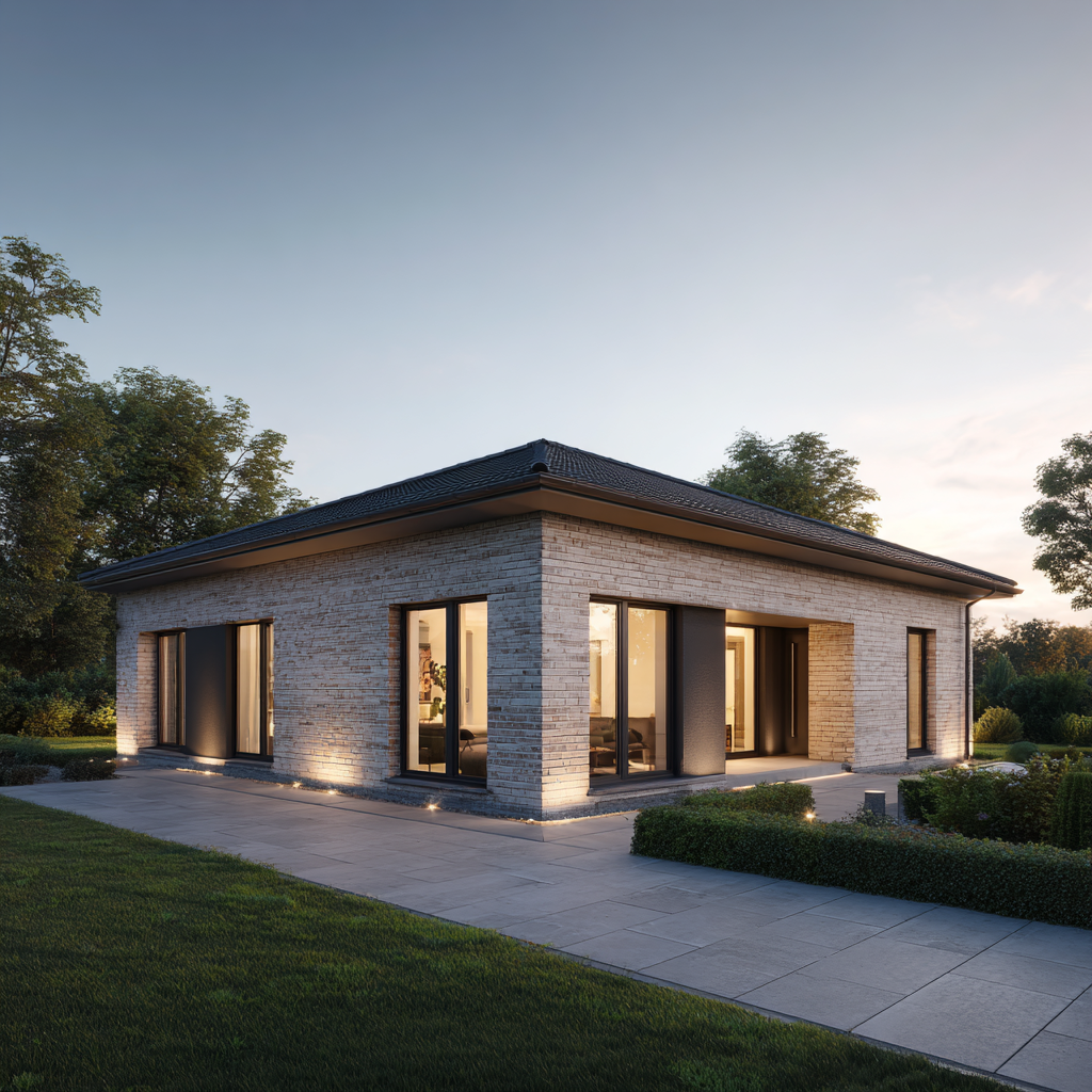 Großzügig, modern und massiv gebaut, der Bungalow „Hafflicht 130“ vereint klare Architektur mit der Ruhe norddeutscher Klinkertradition. Der anthrazitfarbene Klinker, das elegante Walmdach und große Fensterflächen schaffen ein Zuhause voller Charakter. Massiv, energieeffizient und wertbeständig, mit Festpreis- und Bauzeitgarantie. Ein Küstenhaus, das Stil und Beständigkeit perfekt verbindet.
