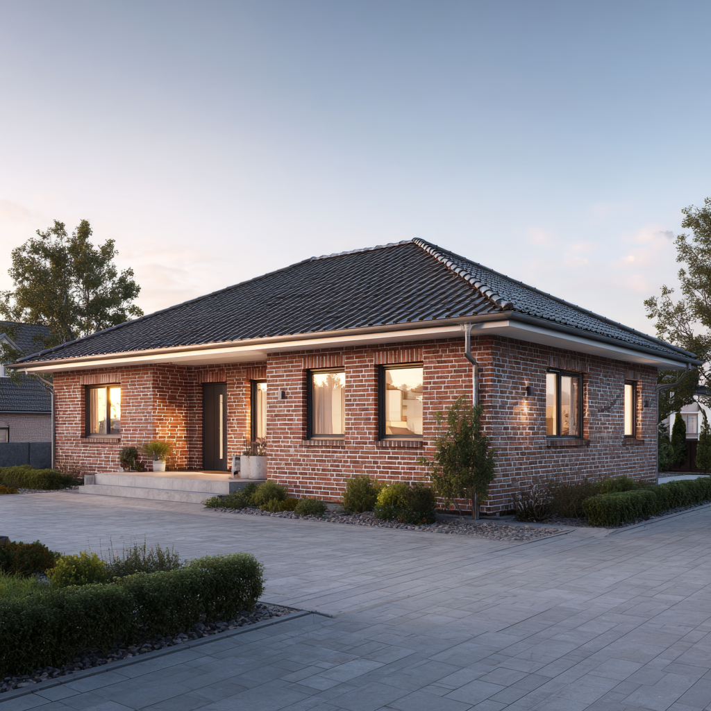 Kompakt, solide und echt norddeutsch, der Bungalow „Hafenstein 90“ vereint klassischen dunkelroten Klinker, klares Satteldach und durchdachte Raumaufteilung auf 90 m². Ein Zuhause mit Charakter, massiv gebaut und wertbeständig, mit Festpreis- und Bauzeitgarantie. Ideal für alle, die Sicherheit und Wohnkomfort auf einer Ebene suchen.
