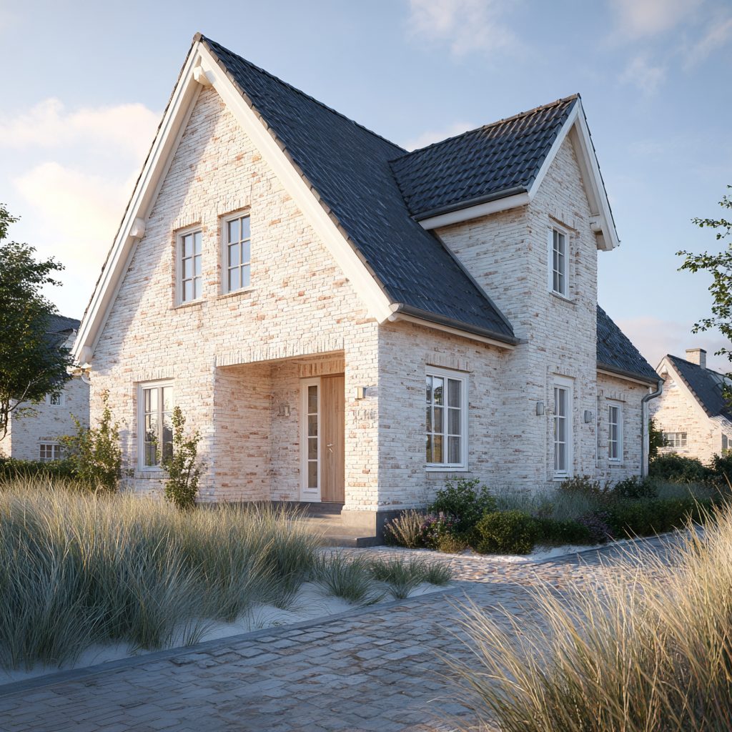 Das Hafenweiß 138 verkörpert helle nordische Eleganz in massiver Bauweise. Der weiß gekalkte Klinker verleiht dem Haus Leichtigkeit und Charakter, während Stein auf Stein gebaute Qualität für Sicherheit und Beständigkeit sorgt. Ein Zuhause, das Werte bewahrt und Zukunft schafft.