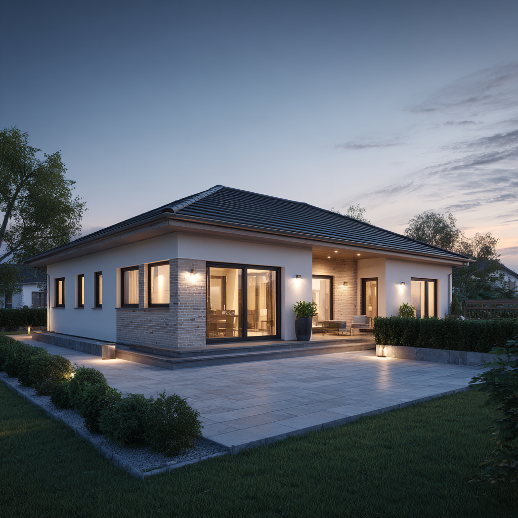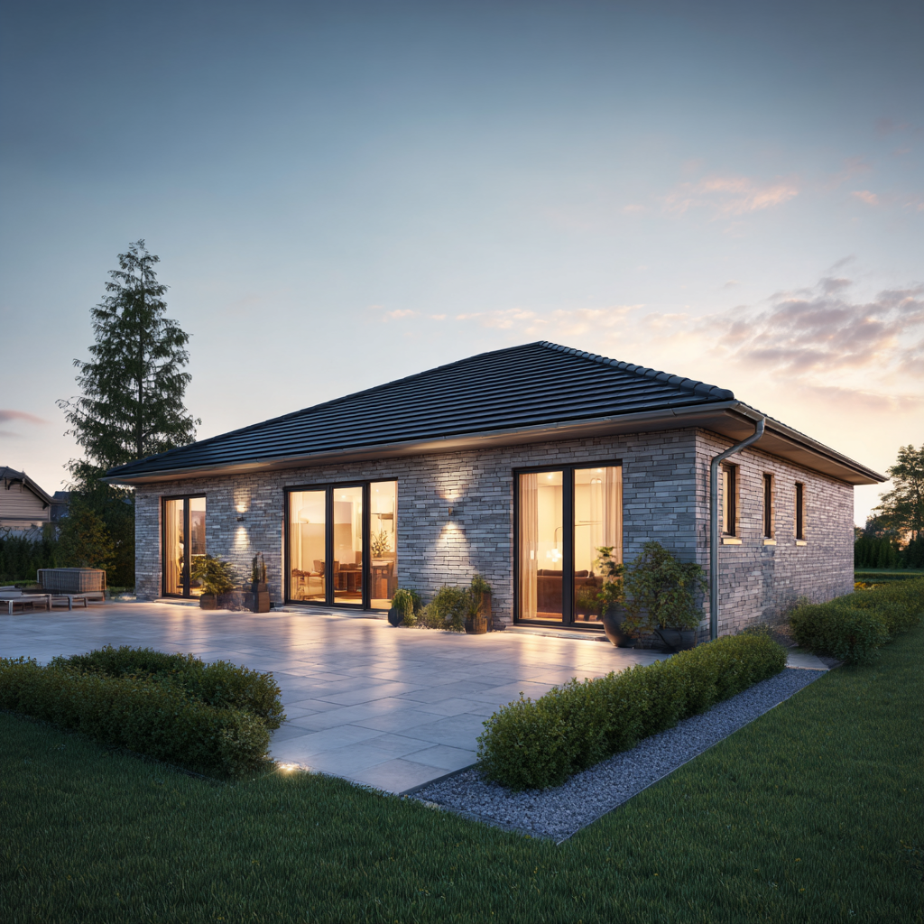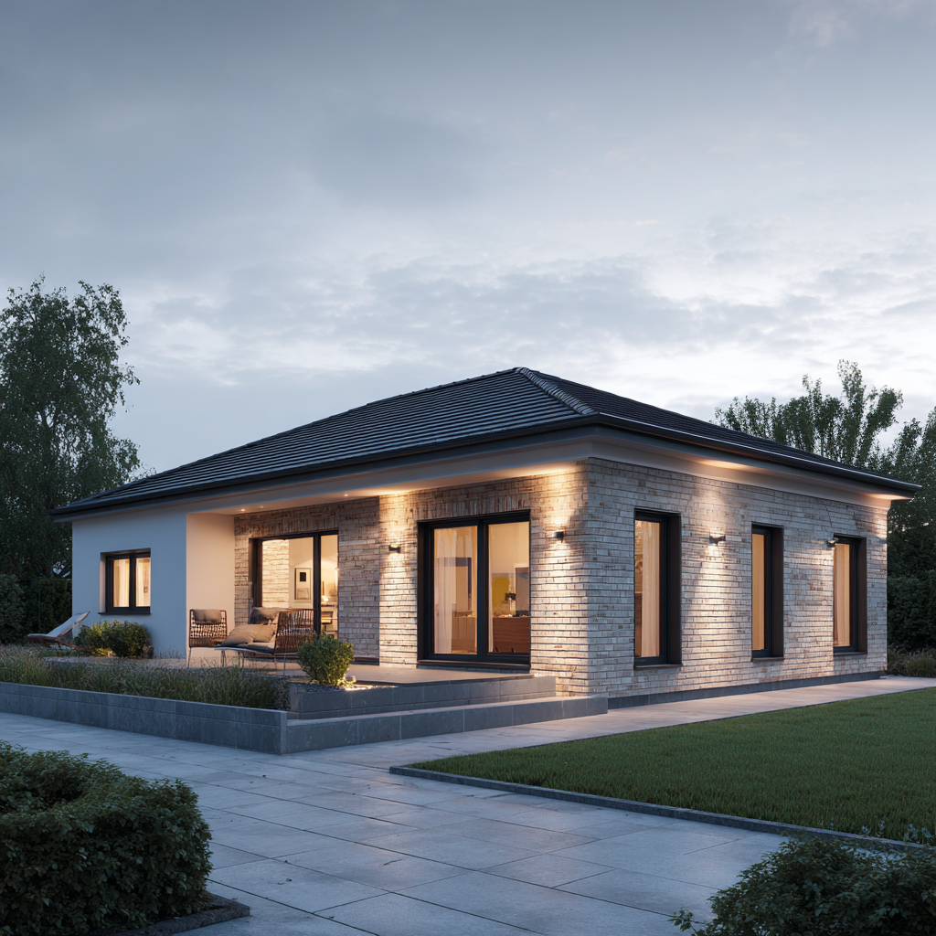 Wer sich ein Zuhause wünscht, das Ruhe, Offenheit und Sicherheit vereint, findet im Bungalow „Dünenblick 112“ den idealen Begleiter. Auf rund 112 Quadratmetern Wohnfläche entfaltet sich ein Wohngefühl, das typisch für den Norden ist – klar, beständig und lichtdurchflutet. Die Kombination aus sandbeigem Klinker, eleganten anthrazitfarbenen Fenstern und dem klassischen Walmdach verleiht dem Haus einen zeitlosen, harmonischen Charakter.