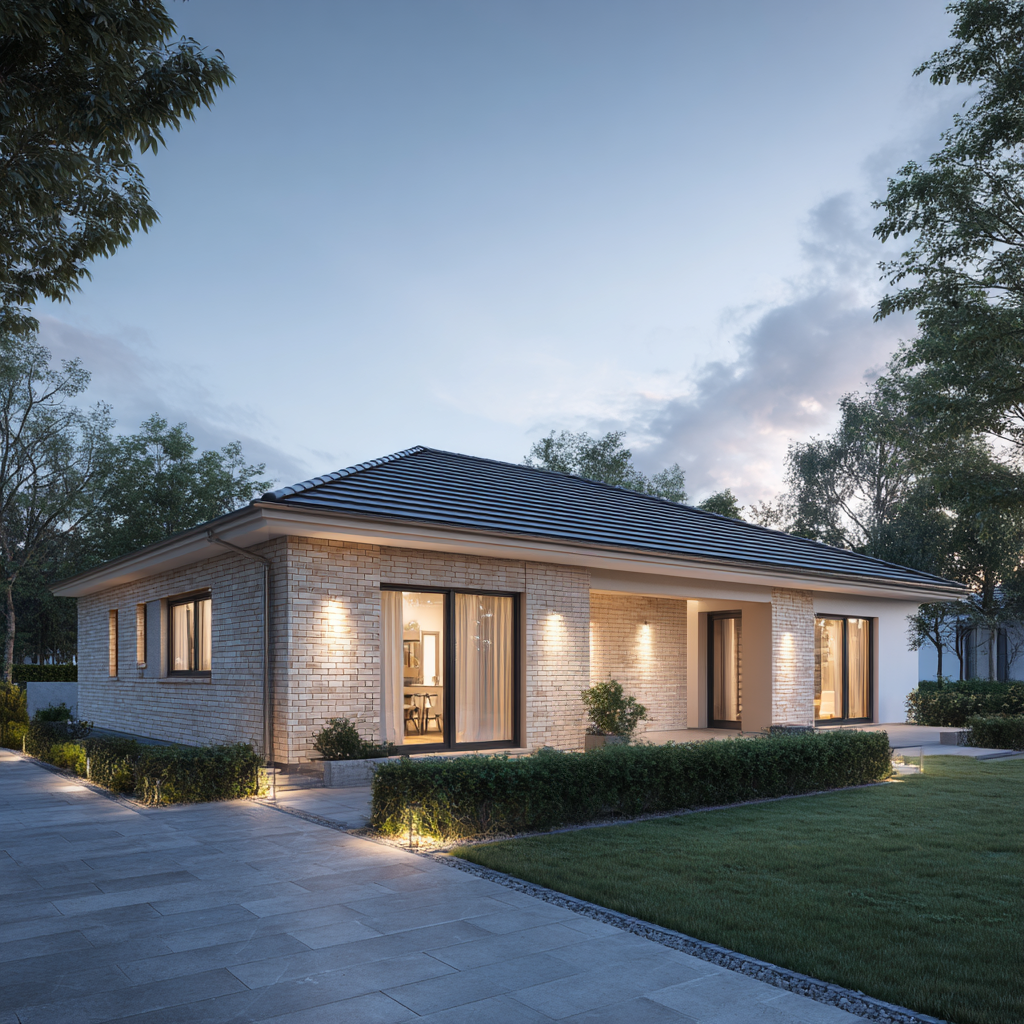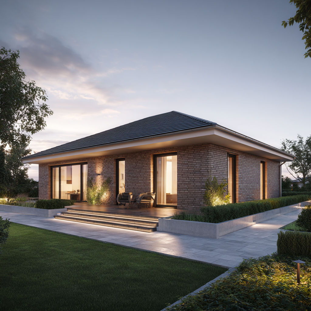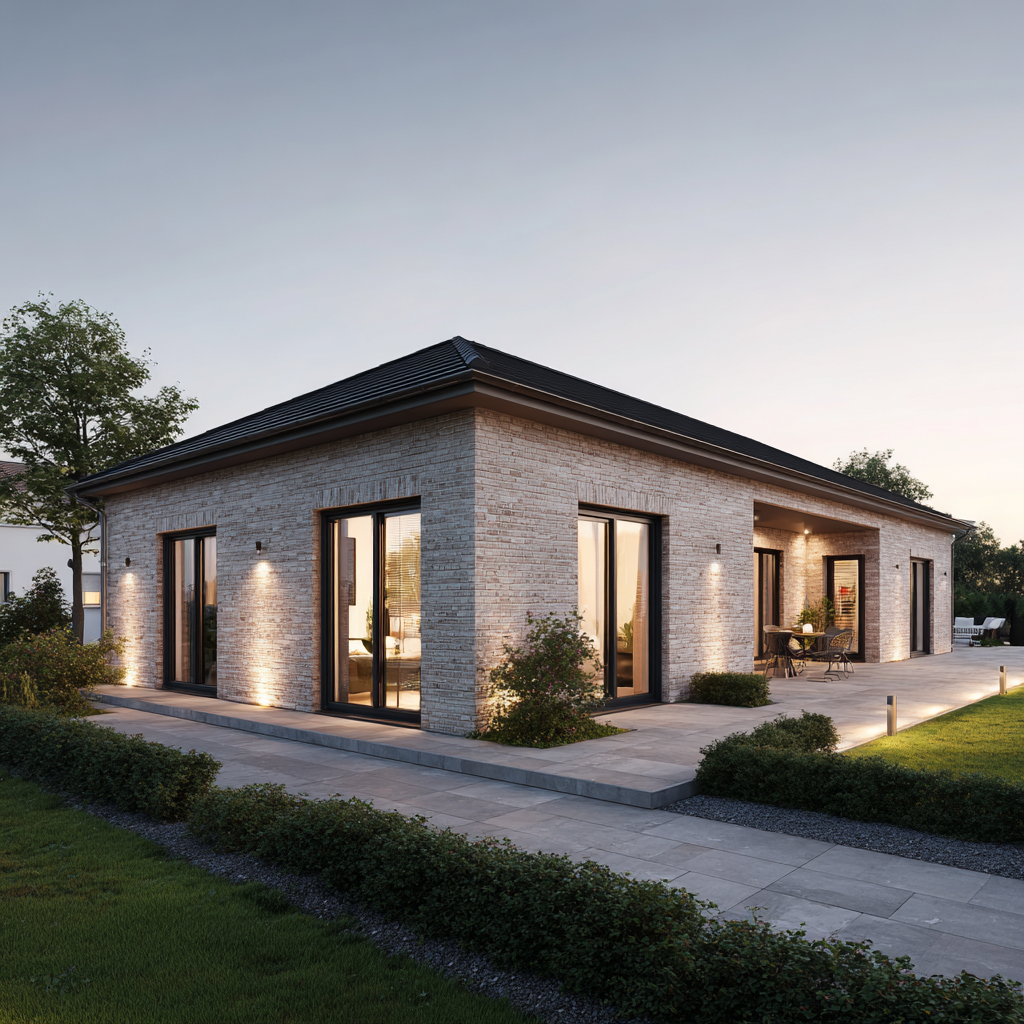 Abends, wenn das warme Licht durch die großen Fenster fällt und die Klinkerfassade in goldenem Schimmer erstrahlt, zeigt der „Dünenblick 112“ seine wahre Stärke: nordische Klarheit, handwerkliche Qualität und das Gefühl, angekommen zu sein. Ein Massivhaus, das Ruhe und Zuversicht ausstrahlt – ganz so, wie man es sich an der Küste wünscht.