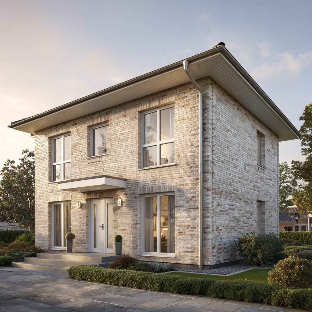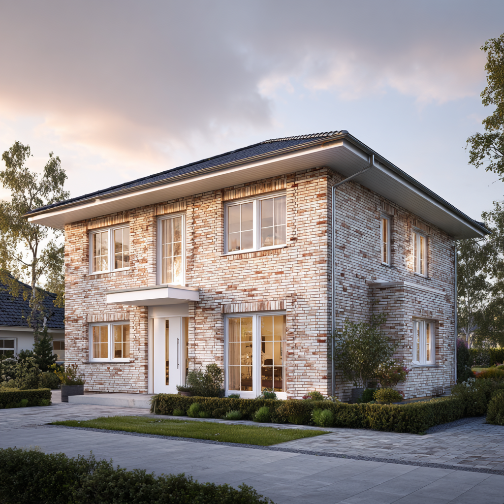 Als Massivhaus überzeugt das Dünenquartett 160 mit Energieeffizienz, Schallschutz und einer langlebigen Materialität. Klinker, der Wetter und Zeit gelassen begegnet. Technik, die zuverlässig arbeitet. Und Details, die täglich Freude machen – von den fein gefasten Fensterfaschen bis zur dezenten Trauflinie.