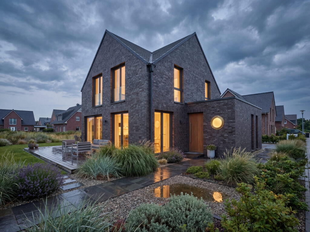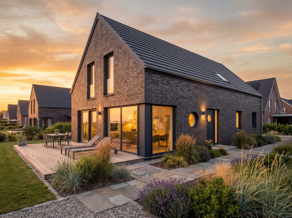 Durch die klare Formensprache wirkt das Haus modern und zeitlos zugleich. Die Kombination aus traditionellem Klinker und zeitgemäßer Architektur schafft einen Stil, der sowohl in Küstenorten als auch in modernen Wohngebieten hervorragend funktioniert.