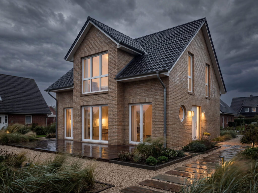 Gerade im Küstenraum, wo Wind und Wetter eine besondere Rolle spielen, zeigt sich die Stärke eines massiv gebauten Hauses. Die Kombination aus massiven Wänden und hochwertigem Klinker schafft eine langlebige Gebäudehülle, die den Anforderungen der norddeutschen Küstenlandschaft bestens gewachsen ist.